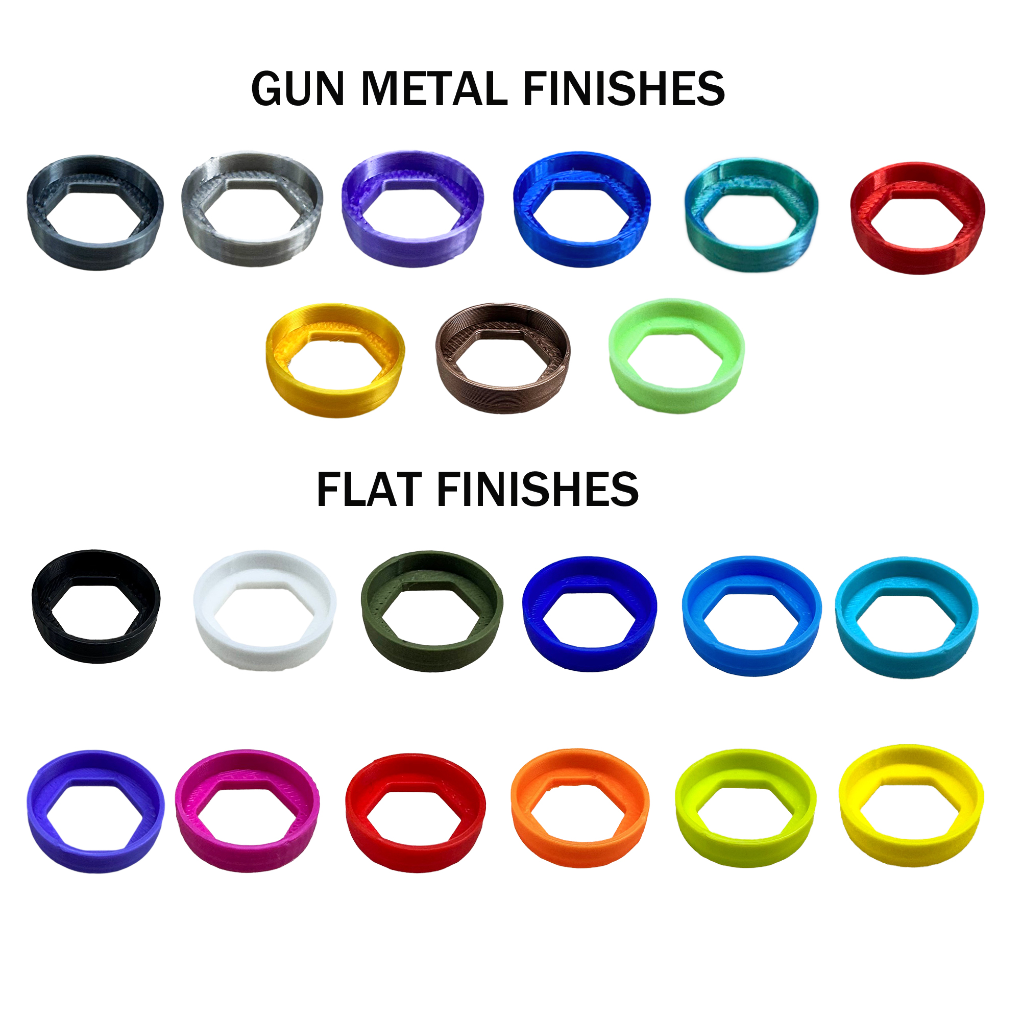 Yellow, Green, Orange, Dark Red, Purple, Pink, Teal, Light Blue, Dark Blue, White, Grey, Black, Gold, Gun Silver, Copper, Green GID, Gun Red, Gun Blue, Gun Grey, Gun Purple, Gun Teal
